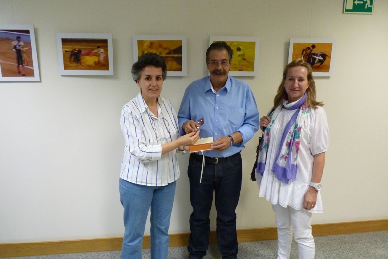 Ya en las fotos de ambiente taurino, el autor recoge el enfrentamiento entre artista y toro, los brillos de los trajes de luces y los colores rojo, albero y negro de las escenas típicas del mundo de la tauromaquia.