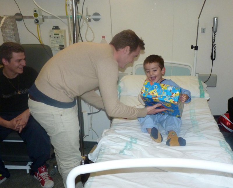 Finalmente los jugadores de fútbol del CD Ciudad Real repartieron alegría entre los niños ingresados, en forma de juguetes. Una representación del equipo capitalino visitó el servicio de pediatría, repartiendo juguetes por todas las habitaciones, recibiendo, a cambio, la sonrisa e ilusión de los niños ingresados.