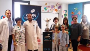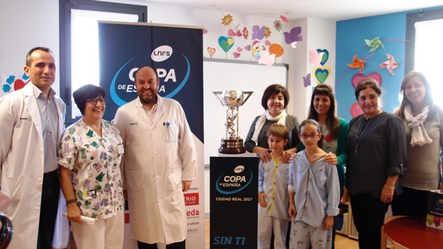 El Hospital General Universitario de Ciudad Real, dependiente del Servicio de Salud de Castilla-La Mancha, exhibe desde este mediodía en el aula hospitalaria la Copa de España de Fútbol Sala para que todos los niños ingresados y los que disfrutan de atención domiciliaria puedan acercarse a verla y fotografiarse con el trofeo que distinguirá al mejor equipo nacional de fútbol sala.