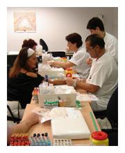 El punto de extracción se encuentra en el acceso de la zona de consultas. Funcionalmente depende de la supervisora del Servicio y consta de una zona de recepción de los pacientes, y de una sala de extracción de muestras con 6 unidades de extracción. Un objeto primordial en nuestro diseño organizativo ha sido mecanizar la fase preanalítica empezando por la identificación univoca de los pacientes y de los tubos. Es el único contacto habitual que los pacientes tienen con el Servicio.
