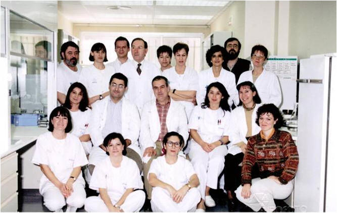 - Foto: Servicio de Anatomía Patológica en 2009. De pie, de izquierda a derecha: Francisco José (auxiliar administrativo), Marcial (patólogo), José Luis (TEAP), Daniel Badía (médico residente de patología del Hospital Valle de Hebrón de Barcelona), Emilio (TEAP), Laura (auxiliar administrativo), Beatriz (TEAP), Belén (TEAP), Prado (auxiliar administrativo), Margarita (patóloga), María (TEAP), Mª Alba (TEAP), Elvira (patóloga) y Francisco (patólogo). Sentados, de izquierda a derecha: Manuel (patólogo), Maribel (auxiliar clínica), Natividad (abajo, TEAP), Mª José (TEAP), Pilar (TEAP) y Jesús (patólogo)