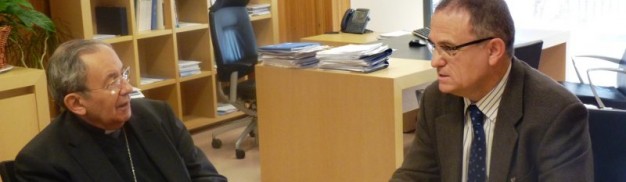 El director gerente de la Gerencia de Atención Integrada de Ciudad Real, Ángel Gómez y el obispo de la Diócesis de Ciudad Real, Antonio Algora, han mantenido un encuentro institucional en el Hospital General Universitario de Ciudad Real, centro dependiente del Servicio de Salud) de Castilla-La Mancha (SESCAM), en el transcurso de la visita pastoral realizada por el obispo.