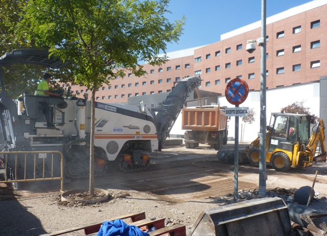 Las obras, que comenzaron ayer, persiguen mejorar la accesibilidad de esta entrada al centro hospitalario, dado que el firme actual plantea dificultades a las personas con movilidad reducida y no es el más indicado ante situaciones climatológicas adversas.