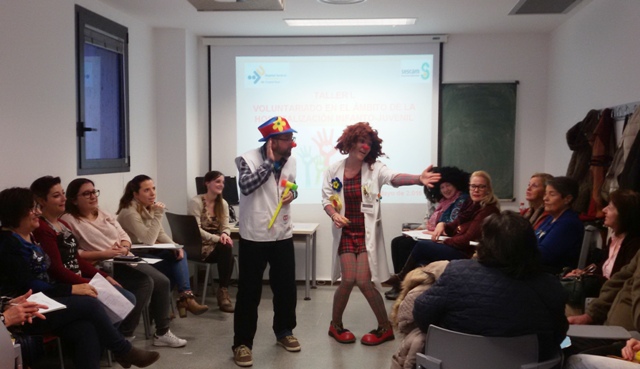 Ya por la tarde se celebraron dos talleres simultáneos para mejorar la coordinación entre profesionales y voluntariado, así como dar una formación básica a los voluntarios en aspectos de medicina preventiva y conocimiento de las unidades en las que intervienen: pediatría, salud mental infanto-juvenil, trastornos de la conducta alimentaria, oncología y hospital de día de psiquiatría.