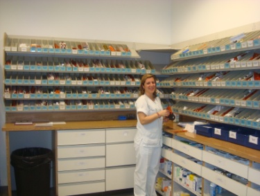 A pacientes externos con un local de dos puestos de trabajo farmacéutico ubicado en la zona de consultas externas.